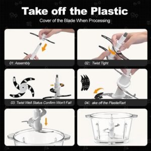 SPZTJK Multifunktionaler Elektrischer Schneidroboter aus, Fleischhacker für den Hausgebrauch,  Zerkleinerer Elektrisch,zwei Schüsseln(Edelstahls & Glass)und klingen,zum Zerkleinern und Hacken geeignet, Ideal für Gemüse, Knoblauch, Salat, Babynahrung